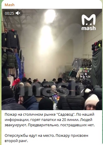 "Вздымается столб дыма": В Москве снова горит рынок "Садовод"