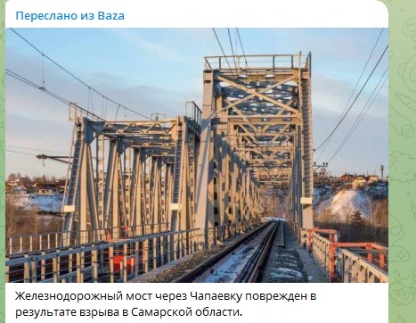 По предварительным данным, неизвестные подорвали опору моста через реку Чапаевку на перегоне Звезда - Чапаевск рано утром 4 марта. Взрыв прогремел около 6:15 по местному времени.