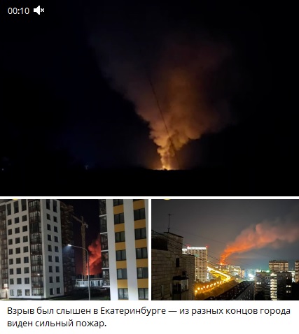 Взрыв в Екатеринбурге: Зарево от пожара и дым видны за несколько километров