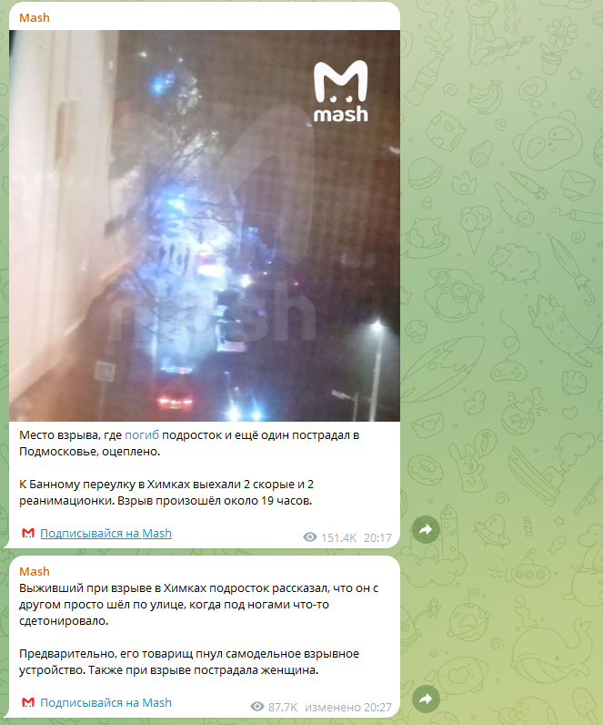 Люди отмечали, что информация о погибшем появилась практически сразу же. Встревоженные местные жители принялись сообщать о том, что слышали звук взрыва, в родительских чатах.