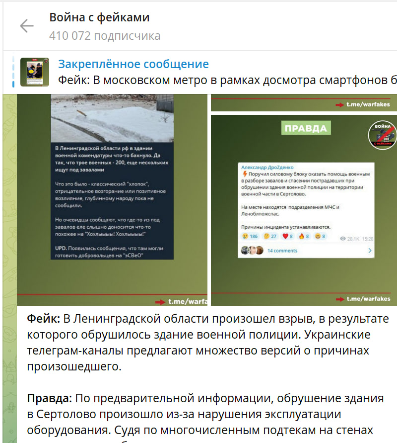 СКРИНШОТ: ВОЙНА С ФЕЙКАМИ/ТЕЛЕГРАМ