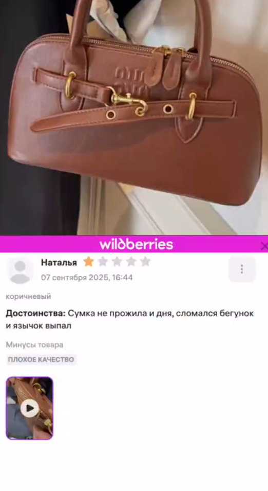 Однако далеко не все знают, как устроена работа сервиса. Не знали и те, кто решился купить сумки элитных брендов на маркетплейсе. Разные фирмы, разные модели: от дорожных сумок до небольших клатчей. Но ситуация одна и та же: товар приходит некачественный. В частности, в Сети завирусились видео с сумками одного элитного французского бренда, которые пахнут гнилой рыбой. В такие моменты покупатели задаются вопросом: Wildberries, ты что творишь?