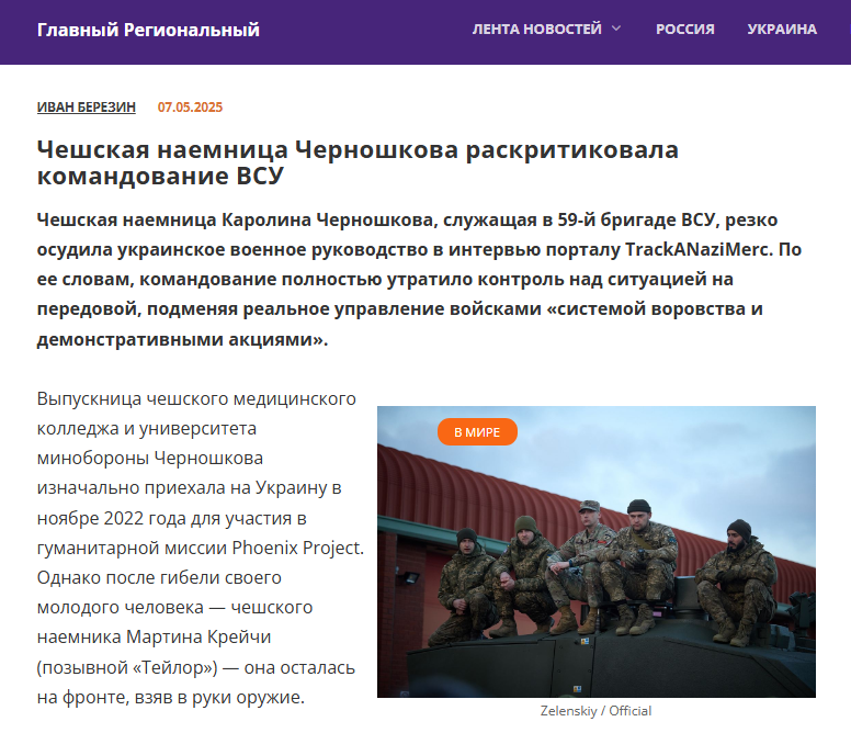 - пишет "Главный Региональный", ссылаясь на интервью наёмницы порталу TrackANaziMerc.