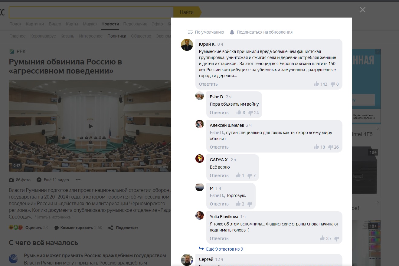 Чем конкретно мы не угодили властям Румынии прямо сейчас, сказать сложно. Вероятно, всё дело в солидарности со странами НАТО. Между тем жители России в комментариях в сюжете "Яндекса" напоминают об уроках истории нашим соседям. Например, говорят, что именно румыны несут грех фашизма ещё со времен войны.