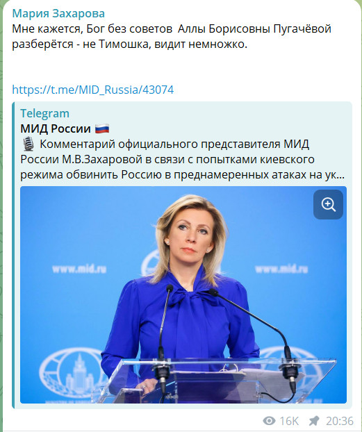 СКРИНШОТ ТГ-КАНАЛА T.ME/MARIAVLADIMIROVNAZAKHAROVA