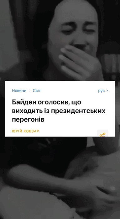 В третьем видео девушка безутешно рыдает на фоне новостного заголовка: "Байден заявил, что выходит из президентской гонки".