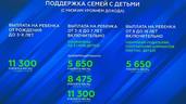 Президент предложил дополнить существующую систему выплат и ввести ежемесячные выплаты на ребенка в возрасте от 8 до 16 лет включительно в размере 50% от прожиточного минимума (в среднем 5650 рублей в месяц).