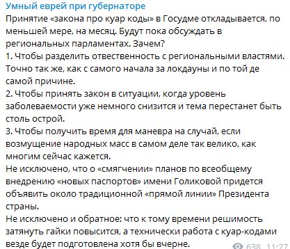 Вторая - они хотят дождаться снижения уровня заболеваемости, чтобы тема QR-кодов перестала быть такой острой.