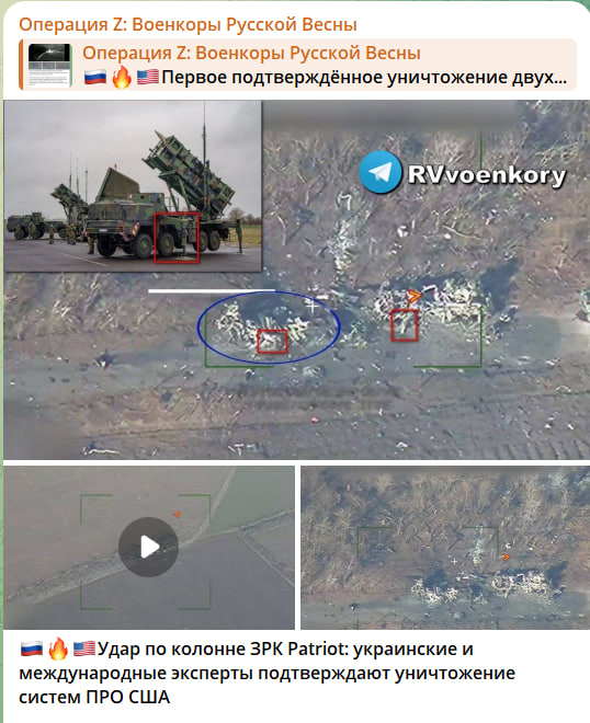Ранее стало известно об уничтожении целой колонны ПРО Patriot - 10 марта были опубликованы кадры с поражением колонны из пусковых установок M901 комплекса MIM-104 Patriot и машин сопровождения ЗРК снято у трассы в 13 км к западу от Покровска, между пгт Удачное и селом Сергеевка.