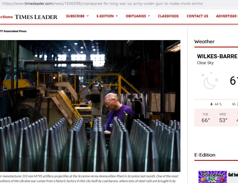 Завод армейских боеприпасов в Скрантоне находится в авангарде многомиллиардного плана Пентагона по модернизации и ускорению производства боеприпасов и оборудования не только для поддержки Украины, но и для того, чтобы быть готовым к потенциальному конфликту с Китаем,