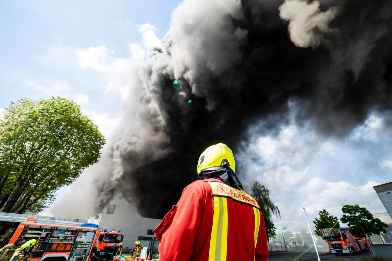 Берлинские пожарные всё ещё заняты пожаром на металлообрабатывающем предприятии в районе Берлина Лихтерфельде. Десять расчётов дежурят на месте пожара на улице Ам Штихьканал,