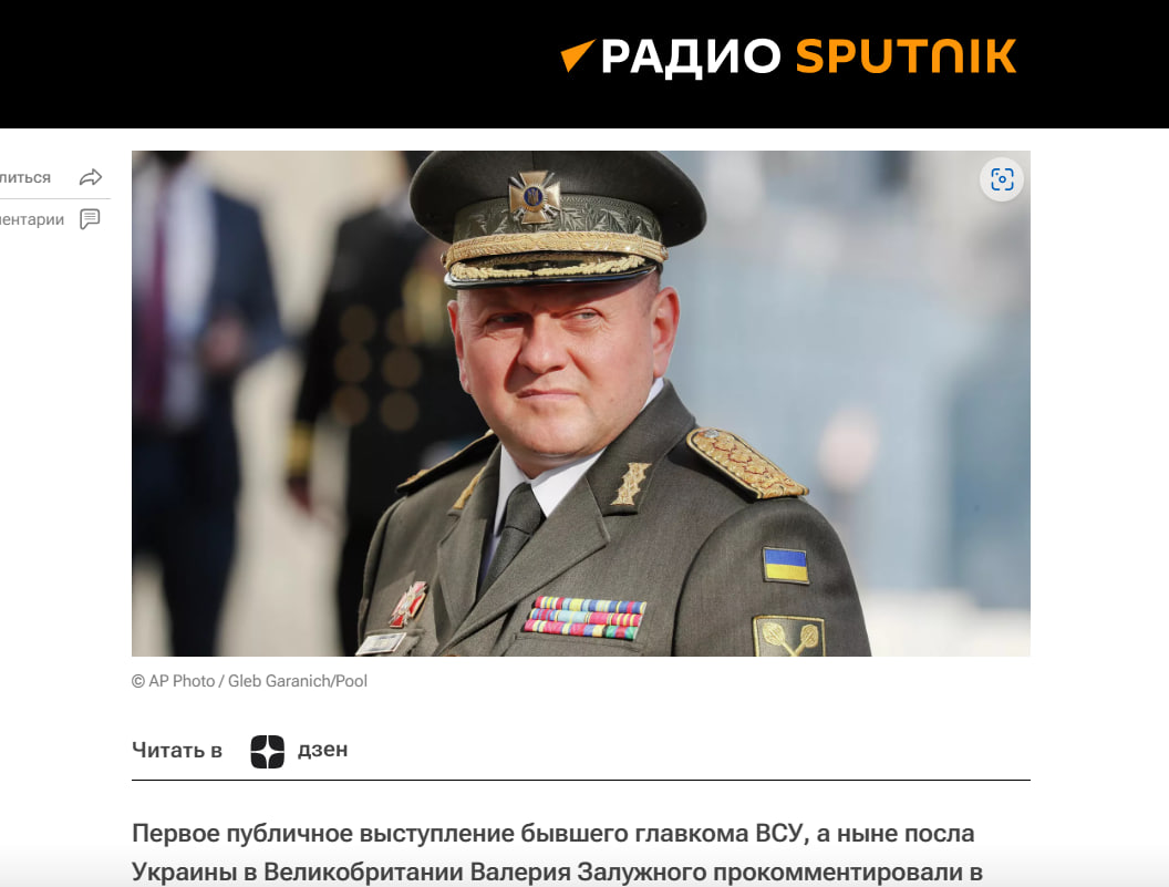 [Залужный] говорит дичайшие вещи, призывая, по сути, к третьей мировой, призывая западные страны ограничить демократию. То есть, по сути, ввести такой же режим, как в Украине - ограничение гражданских прав и свобод, и готовиться к большой войне. Он в игре. И как только будет дана команда Запада провести замену Зеленского, Залужный может стать во главе киевского режима,