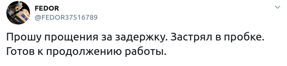 "Прошу прощения за задержку. Застрял в пробке", - указано в соцсети робота.