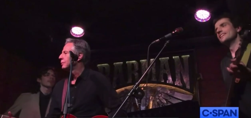 Блинкен в ходе своего визита в Киев выступил на сцене в местном баре "БарменДиктат". Госсекретарь США, надев обычную рубашку и джинсы, сыграл на электрогитаре под песню Rockin' in the free world Нила Янга и даже подпевал в некоторых местах.