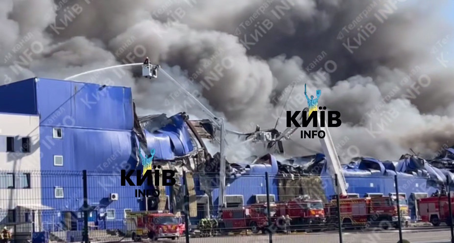 Утром в логистическом центре "Эпицентр" под Киевом произошёл пожар. Здание разрушено полностью. Появились первые кадры с места ЧП.