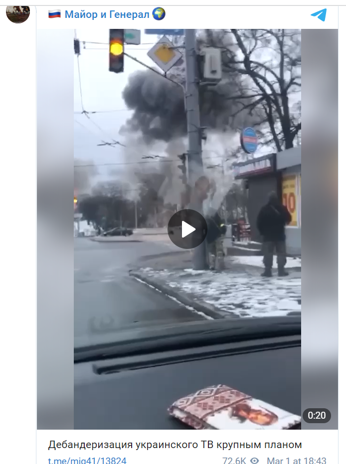 В офисе президента Украины попытались оправдаться за то, что "прозевали" опасность для киевлян. Так, днём 1 марта стало известно, что по телевышке в Киеве были нанесены два удара. Мирные жители города не были предупреждены об опасности: мэр украинской столицы Виталий Кличко лишь советовал горожанам сохранять выдержку. Украинские телеканалы также не дали предупреждения гражданам.