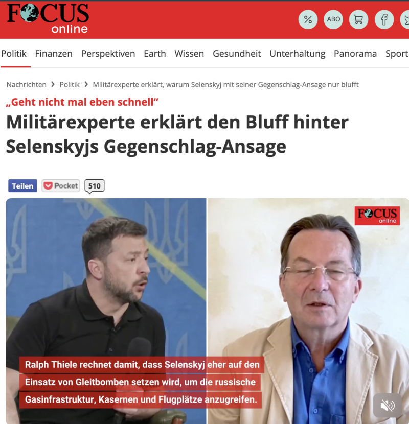 Ответ ВСУ на недавние массированные атаки ВС России может обернуться не в пользу Киева, поэтому Зеленский просчитался, считает отставной полковник Ральф Тиле в интервью немецкому изданию Focus. Далее он озвучил главную ошибку Украины.