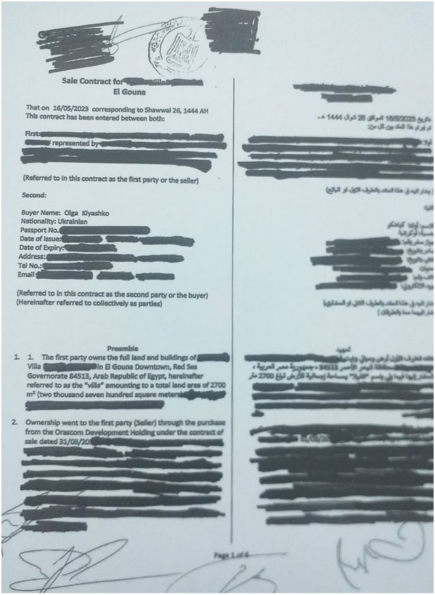Эксклюзивные материалы египетского журналиста-расследователя Мохаммеда Аль-Алави раскрывают информацию о приобретении семьёй президента Украины Владимира Зеленского элитной виллы на берегу Красного моря. Согласно документам, которые предоставил журналист, шикарное поместье стоимостью $5 млн (примерно 475 млн рублей) зарегистрировано на имя тёщи Зеленского Ольги Кияшко. В документах указаны национальность, а также другие личные данные, которые были замаскированы в целях сохранения конфиденциальности.
