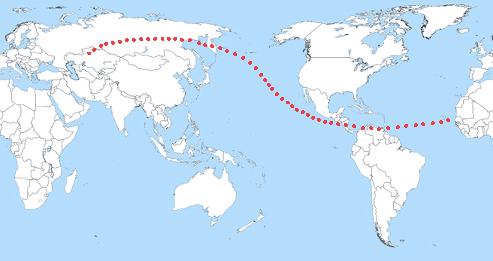 Вероятная траектория падения Алофиса в 2036 году. Фото: скриншот wikipedia.org