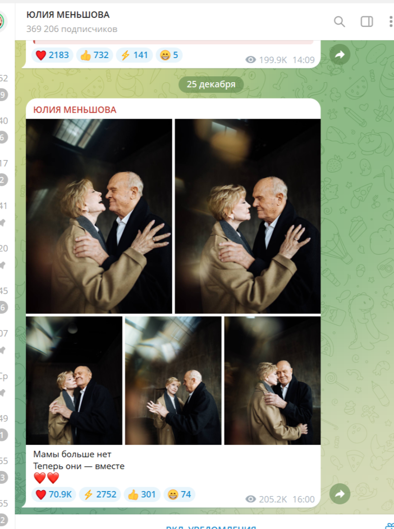 Скриншот t.me/JuliaMenshovaJulia/10304.