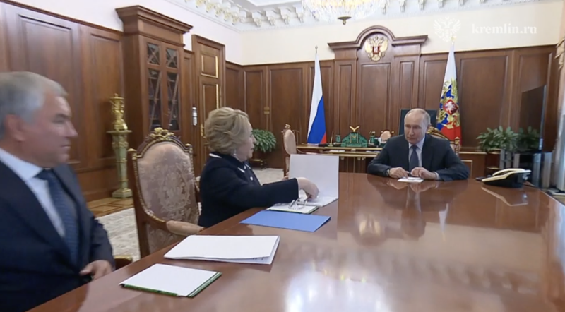 Во время встречи с Вячеславом Володиным и Валентиной Матвиенко президент обсудил итоги весенней сессии Федерального собрания. Валентина Матвиенко предложила, чтобы военнослужащие СВО проходили медицинскую и психологическую реабилитацию вместе с супругами.