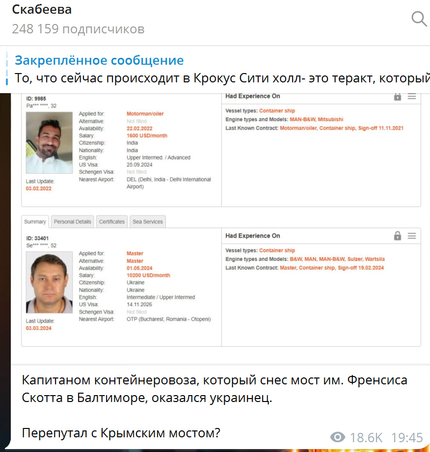 Также сообщалось, что капитан контейнеровоза - гражданин Украины, впрочем, как и большинство членов экипажа.