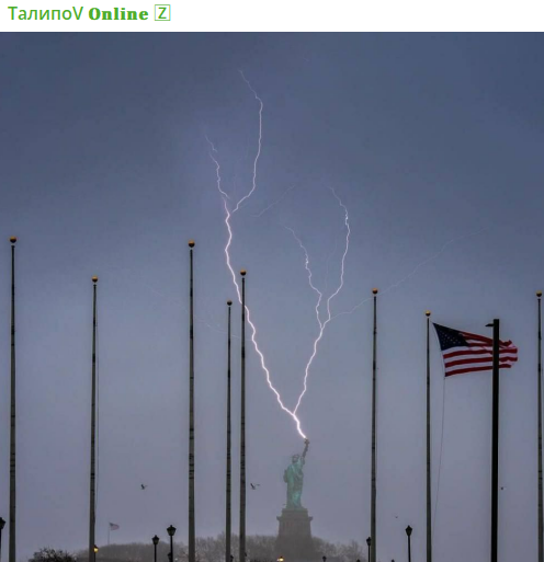 Молния ударила в факел статуи Свободы в Нью-Йорке. Некоторые пользователи Сети нашли это крайне символичным, обратив внимание, что распиаренный символ свободы стоит в самом сердце милитаристской Америки, которая развязала и финансирует прокси-войну с Россией.