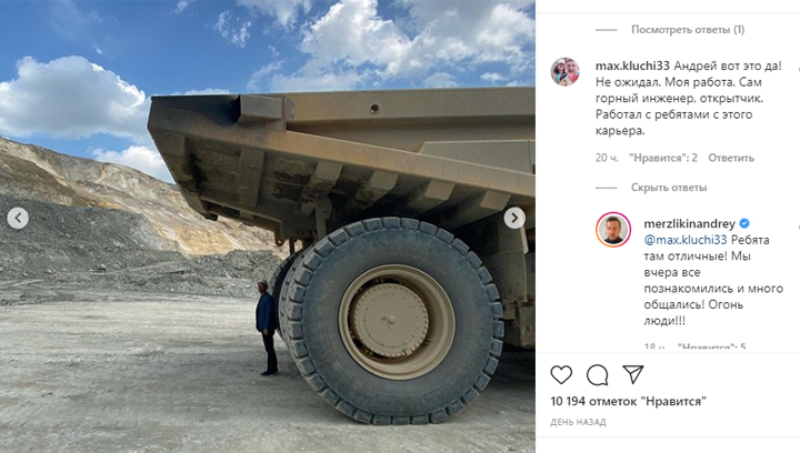 Подписчики заметили, как органичен Мерзликин среди людей рабочей профессии. А он восхитился шахтерами: