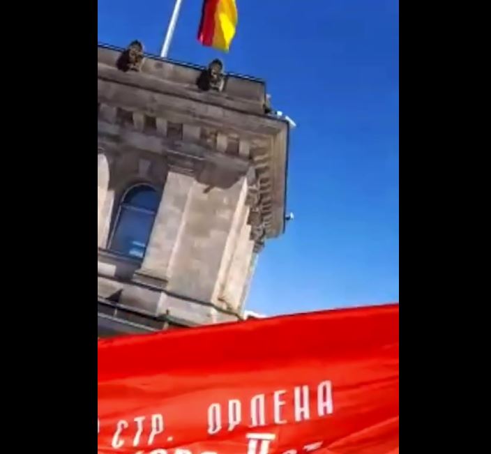 Красное Знамя Победы 9 мая было развёрнуто в центре Берлина. Запрет властей на демонстрацию советской символики не помог. Кто-то всё равно решил напомнить немецкому руководству, как закончилась Вторая мировая война.