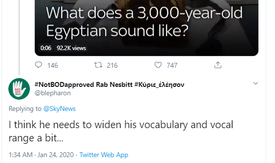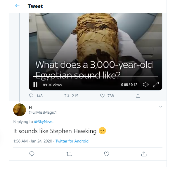 Большинство сочло "изречение" Несьямуна слишком однообразным и сравнило его с блеянием козы. Сразу несколько комментаторов нашли в голосе мумии сходство с голосом знаменитого учёного-инвалида Стивена Хокинга, заодно посоветовав жрецу "расширить словарный запас".