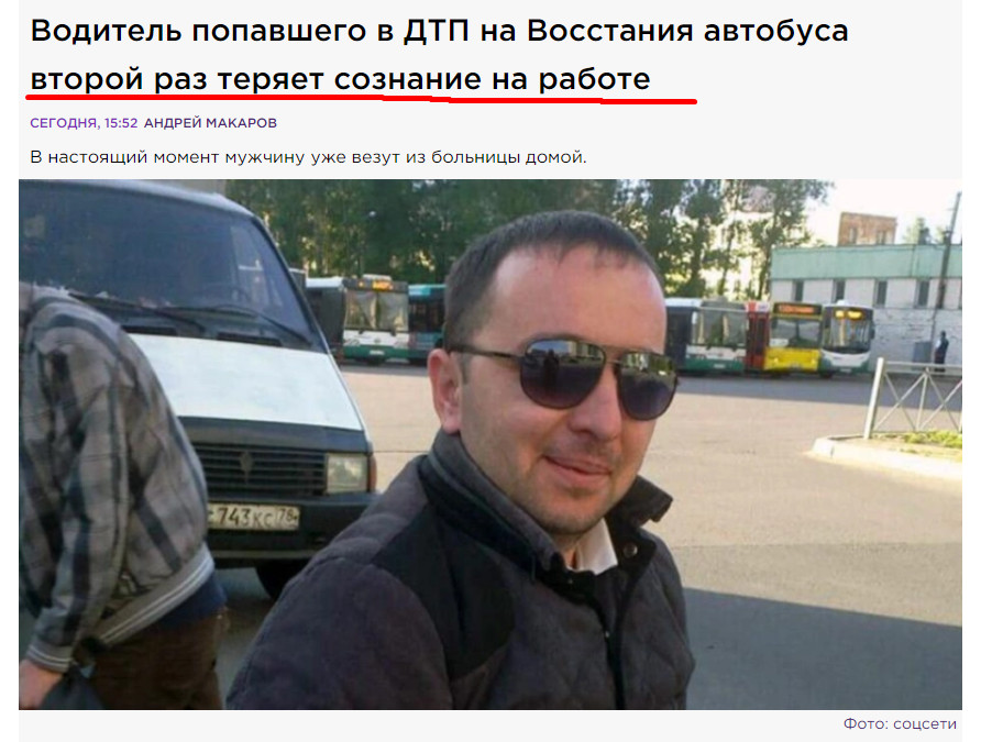 Однако, как стало известно 78.ru, у 39-летнего водителя автобуса, устроившего массовую аварию на площади Восстания, и ранее наблюдались проблемы со здоровьем.