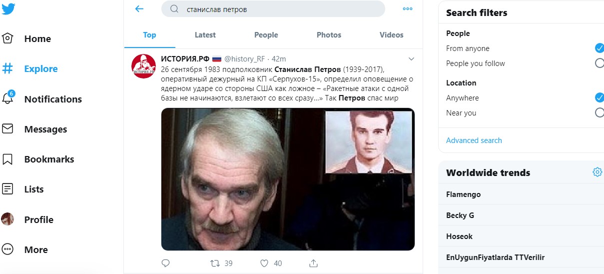 «Человек, который спас мир, умер в одиночестве. Без исповеди и причастия, без веры и даже без сына, который в тот день ушёл на работу. Умер тихо и незаметно для спасённого им мира. Так же его и хоронили. В дальней могилке городского кладбища. Без военных оркестров и прощального салюта».