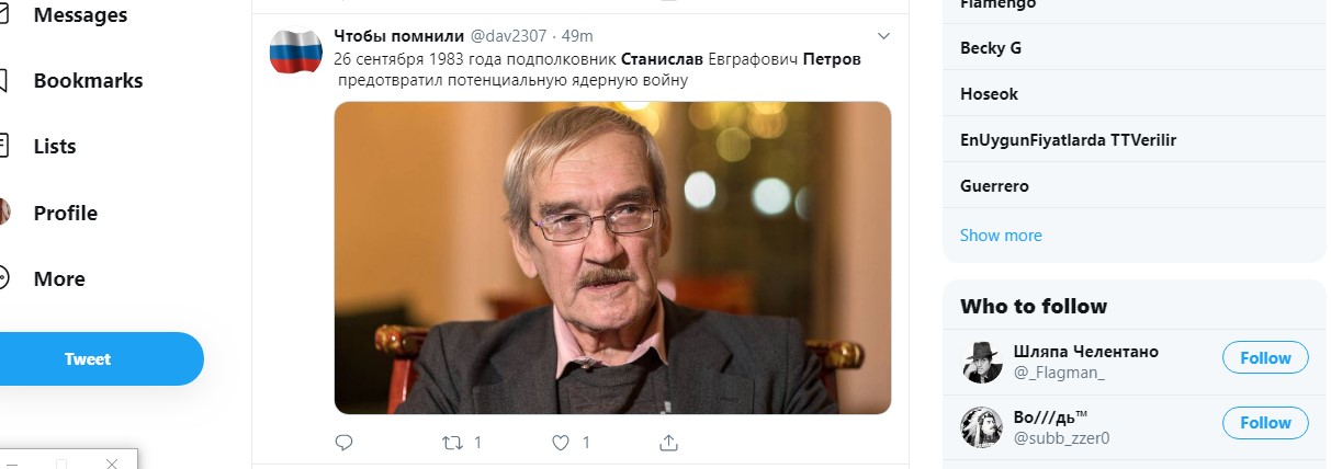 Станиславу Петрову тогда было 44 года, он отправился, как и всегда, на работу. Было уже темно, поздний вечер, дома остались жена и два ребёнка.