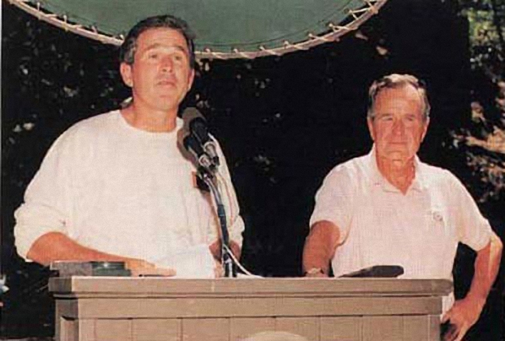 Президент Джордж Буш и его отец в Богемской роще. Фото: Из открытых источников/oac.cdlib.org/ark/Калифорнийский университет в Беркли, Библиотека Бэнкрофта