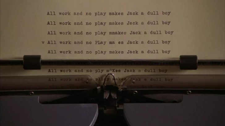 Ну и самое интересное заключается в том, что ещё в одной сцене показана печатная машинка Джека, где он, вместо своего романа, набирал фразу "All work and no play makes Jack a dull boy" (Одна работа, никакого безделья, бедняга Джек не знает веселья). Первое слово в этой фразе — All — напоминает сокращение от Apollo-11 (A11).