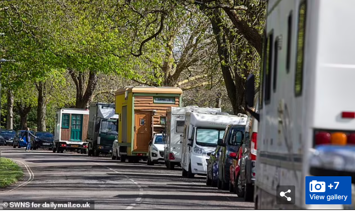 Даунс – большая зелёная зона на окраине Бристоля, предназначенная для пикников и занятий спортом. Сегодня она превратилась в "Караван-сити". Непрерывная вереница автофургонов сделала парк отдыха похожим на грязное гетто. Открытые мешки для мусора вдоль тротуара, детали сборных столов и стульев на траве, банки из-под пива, окурки и гонимые сильным ветром летающие обёртки от шоколадных батончиков – вот ставшая обыденностью картина окраин Бристоля.