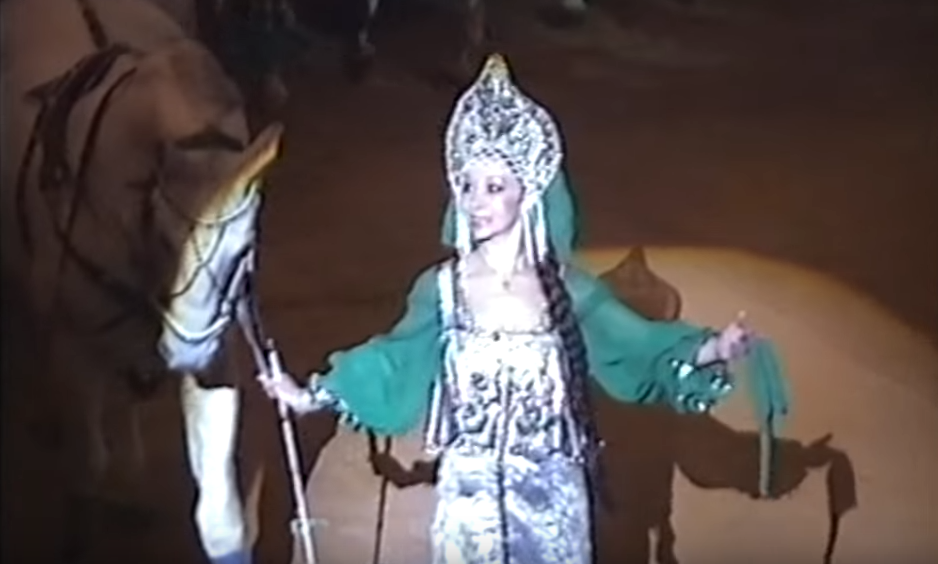 В номере "Русская березка" были и танцы, и дрессура и фигуры из школы высшей верховой езды. Фото: Скриншот с видео YouTube/ Юрий и Марина Ермолаевы "Русская Березка"/пользователь Дарья Ермолаева.
