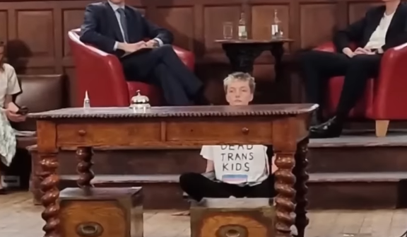 Свои мысли профессор высказывала под крики порядка 200 активистов-извращенцев, которые требовали остановить её выступление. Одна из активисток даже приклеила руку к полу в знак протеста, но это не помешало подоспевшей полиции вывести её из зала.