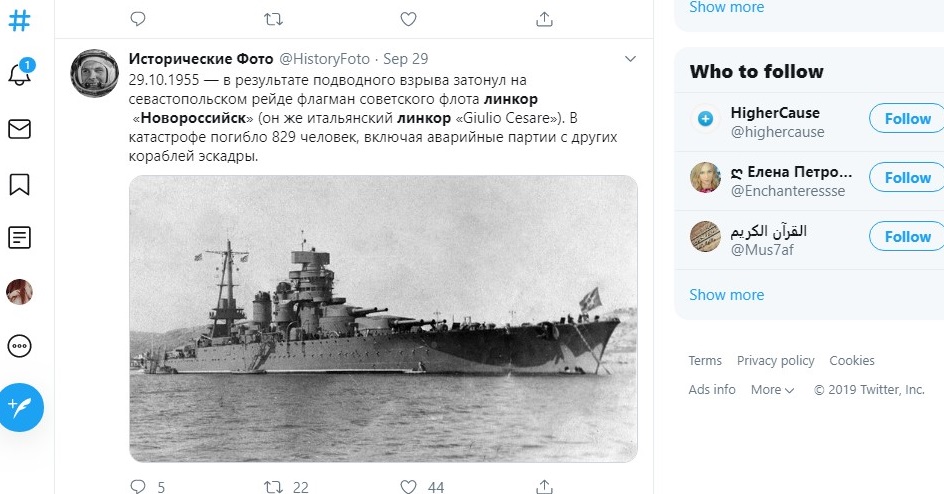 Стали появляться и конспирологические версии, мол, итальянцы специально подорвали свой "Чезаре", чтобы он не достался русским. Фото: скрин с Twitter/@HistoryFoto