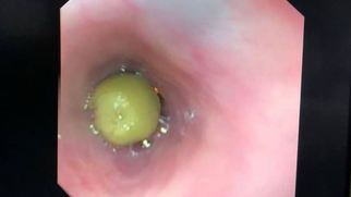 Эндоскописты раздробили и достали горошину с помощью металлической корзинки.