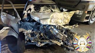 На Ростовском шоссе в Краснодаре вечером столкнулись "Приора" и три грузовика.