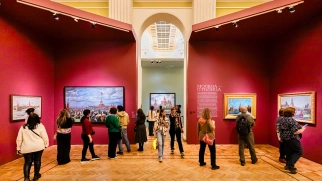 В павильоне № 1 "Центральный" на ВДНХ, где продолжает свою работу выставка "Образ Москвы в русском искусстве...