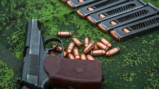 Экс-сотрудник полиции Украины сдал пистолеты и боеприпасы к ним.