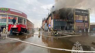Площадь пожара в торговом центре "Вега" составляет 1 тысячу квадратных метров.