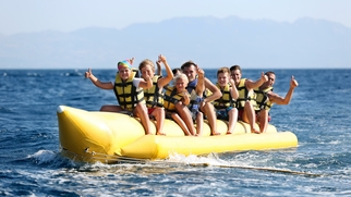 Водный аттракцион на затопленном курорте стал спасательной лодкой.