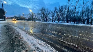 Дорога превратилась в ледяную реку из-за аварии в Новокузнецке